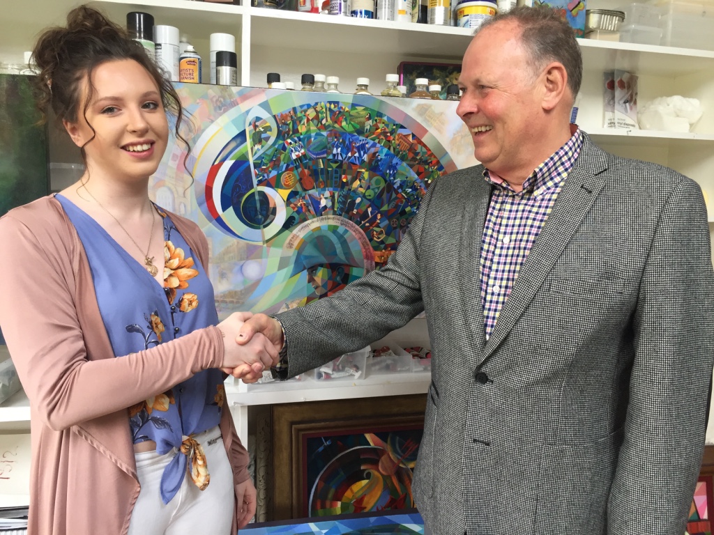 John Hepworth representing the Charity received the oil painting by Ian for inclusion in the live auction at this year’s Royal Academy Summer Exhibition in July.